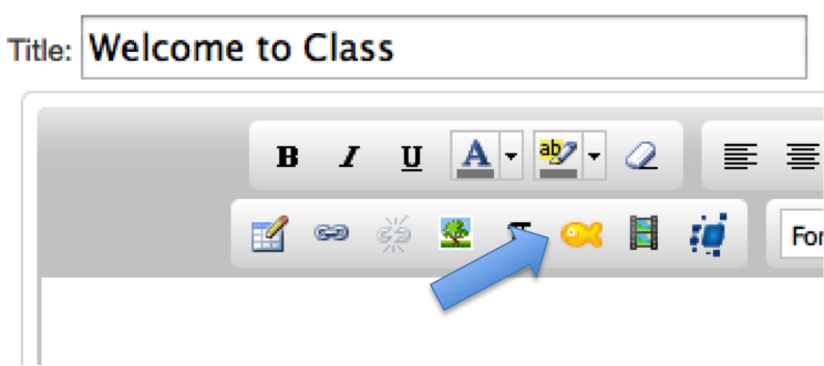 This shows adding an editor button to the rich editor in course/group content. Editor button extensions show up in Canvas as icons in the right editor, in this case as a fish icon. This simple demo app lets the user pick from a list of fish pictures. The picture they choose will be inserted into the rich editor.